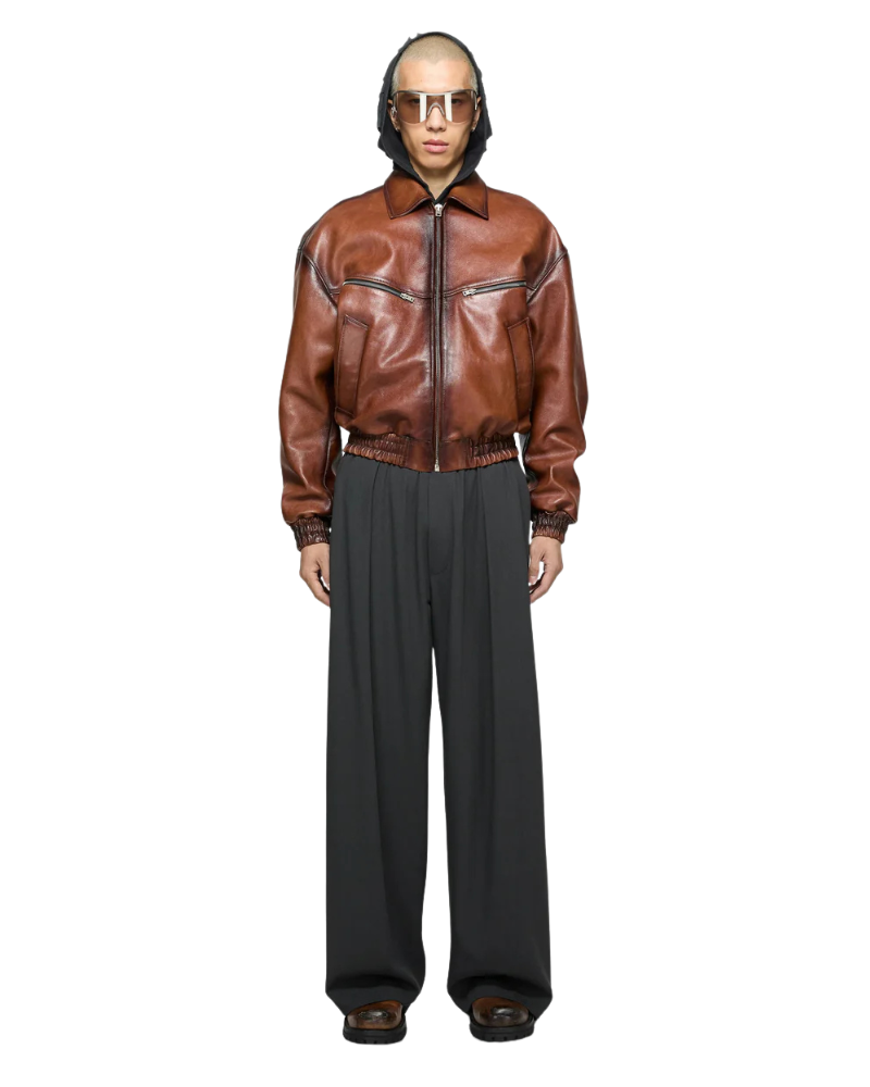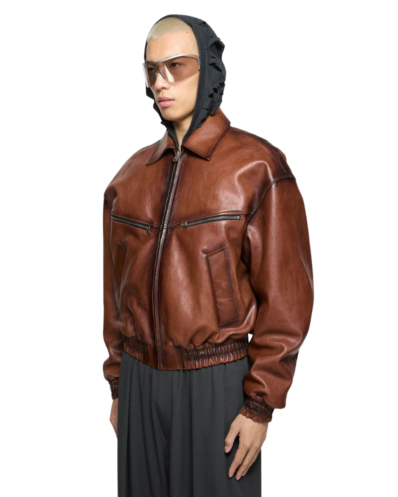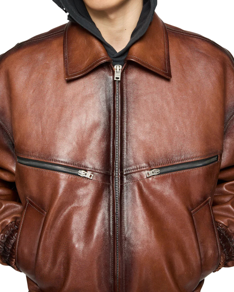 TJF: Men’s Brown Leather Bomber Jacket